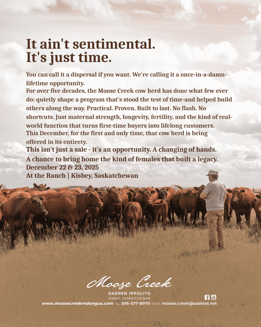 Join us at Moose Creek Red Angus on December 22nd & 23rd, 2025, near Kisbey, Saskatchewan, and have a chance at a once-in-a-lifetime opportunity.